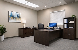 Energy-efficient building with warehouse and office space. Features include ample on-site parking, a fully fenced and paved ±1 acre compound area, and a fully sprinkled system.