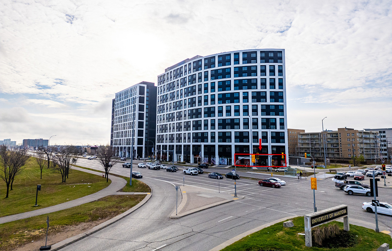 Prominent main floor space with excellent exposure to Pembina Highway. The property offers underground staff parking, surface parking for visitors, and the potential for a patio. With over 1,000 new residential units within walking distance, and more than 1,100 student housing beds at The ARC and Align, the space benefits from a strong built-in customer base.